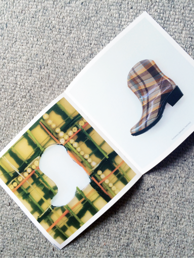 撮影の仕事では、靴のブランドと組んでパンフレットをつくったことがある。レインブーツの質感に合わせて野菜のゼリー寄せで表現。斬新な組み合わせだ。